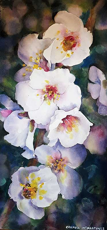 30- Acuarela. Flores de almendro. 60x30cm.